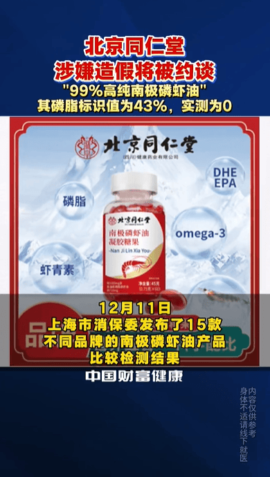 不同案例中,零含量乱象的表现形式各有侧重,暴露出的行业漏洞也不尽相同。同仁堂南极磷虾油事件具有代表性,这款标称磷脂标识值为43%的产品实测磷脂含量为零,在这背后是老字号“贴牌授权”模式的失控。涉事产品由安徽哈博药业生产,该企业明知生产过程中未添加宣称的“南极磷虾油”,却仍按照经销商要求制作虚假标注的包装,属于故意造假行为。同仁堂四川健康药业作为经销商,以远低于正常水平的价格定制,生产过程中未履行必要的审核监督义务,也未公开产品的检测结果,对产品与宣传不符的情况却视而不见,事后还试图回避问题、推卸责任。双方为追求短期的利润,共同违背了食品安全底线与企业诚信原则,让“同仁堂”的品牌信誉成为造假的工具,充分反映出知名企业对子品牌管理的松懈。